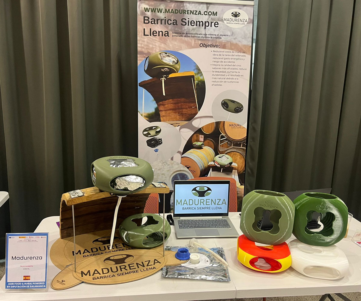 El inventor Raúl Sierra, fundador de la empresa Madurenza, ha presentado en la edición de este año de Startup Olé Salamanca su último modelo de utilidad patentado: «Barrica siempre llena», un sistema que evita que el vino entre en contacto con el aire durante su ma-duración.